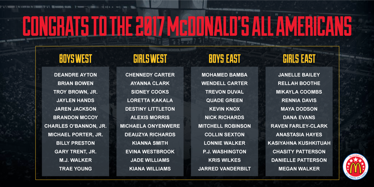 Late last night, ESPNU announced both the girls and boys selections for the McDonald’s All-American game.